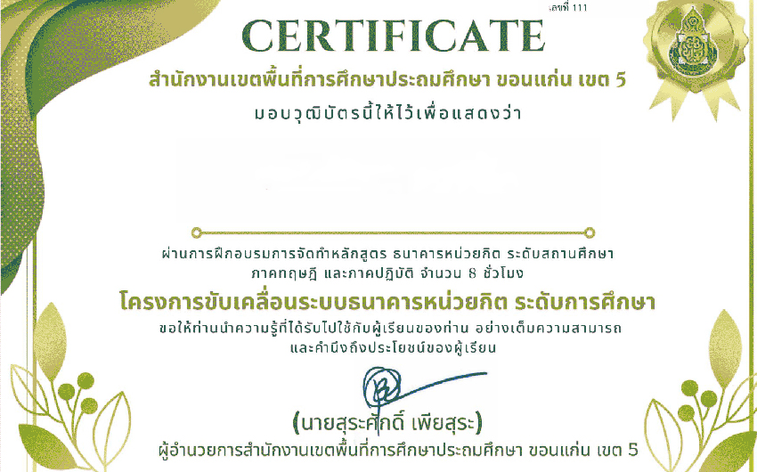 เขตพื้นที่การศึกษาประถมศึกษาขอนแก่นเขต5 มอบวุฒิบัตร โครงการขับเคลื่อนระบบธนาคารหน่วยกิต