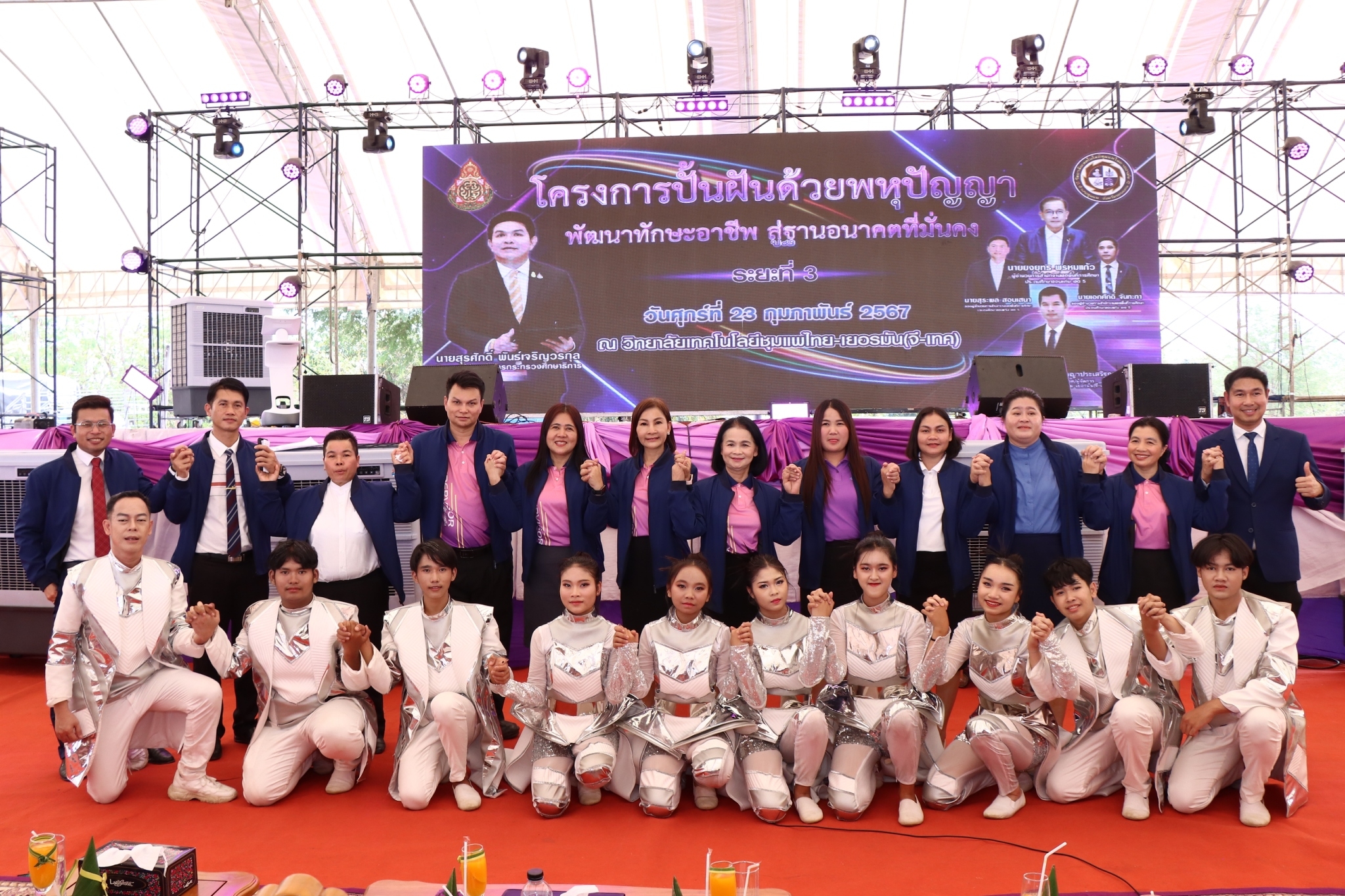 เวลา 10.30 น. วันที่ 23 กุมภาพันธ์ 2567 นายสุรศักดิ์ พันธ์เจริญวรกุล รัฐมนตรีช่วยว่าการกระทรวงศึกษาธิการ เป็นประธานเปิดโครงการปั้นฝันด้วยพหุปัญญา พัฒนาทักษะอาชีพสู่ฐานอนาคตที่มั่นคงระยะที่ 3 โดยมีนายยงยุทธ พรหมแก้ว ผู้อำนวยการสำนักงานเขตพื้นที่การศึกษาประถมศึกษาขอนแก่น เขต ๕ ผศ.ดร. นายเกรียงไกร วงศ์ปัญญาประเสริฐกุล ผู้บริหารวิทยาลัยเทคโนโลยีชุมแพไทย –เยอรมัน G-tech