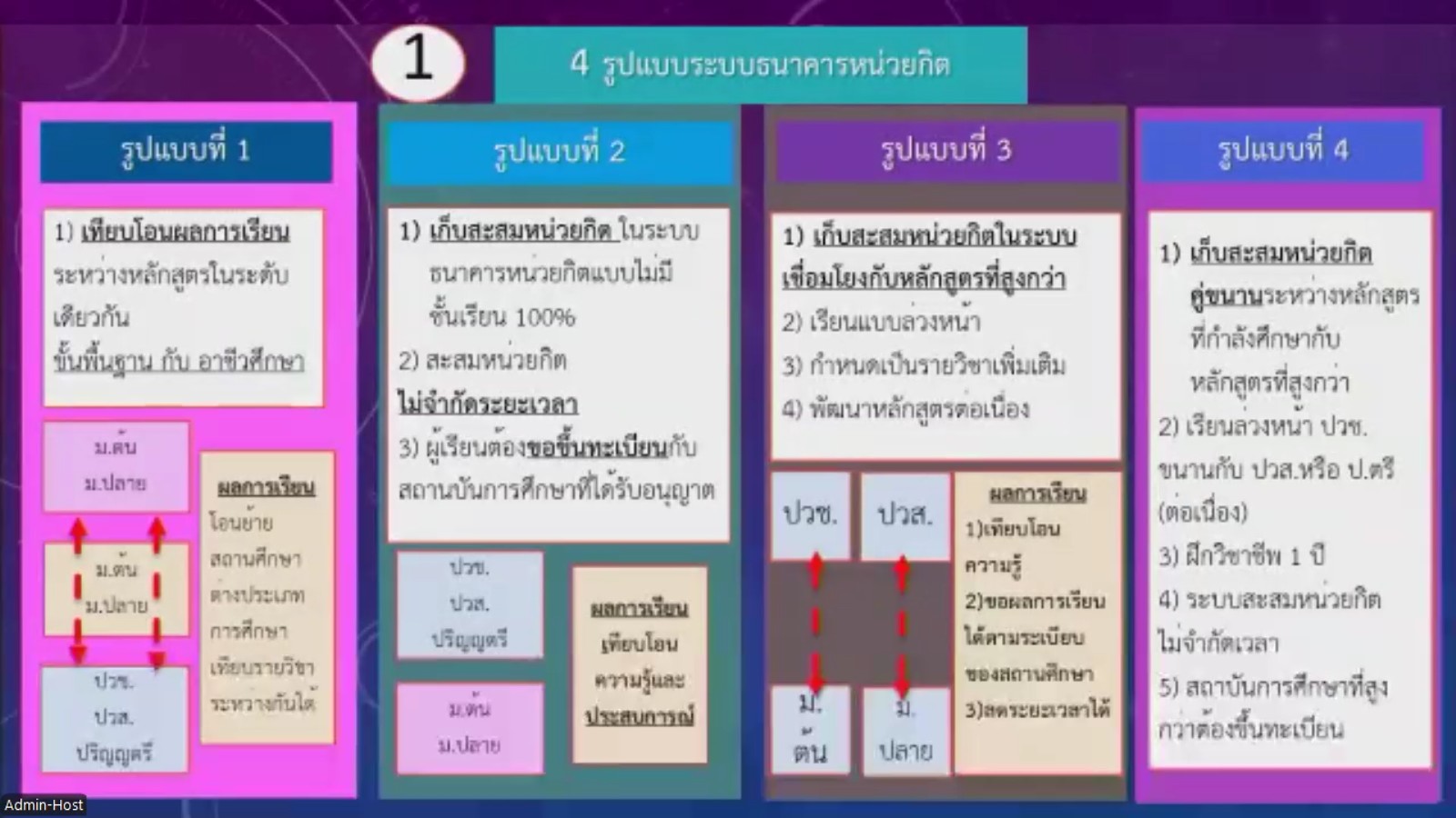 ชี้แจงแนวการขับเคลื่อนระบบธนาคารหน่วยกิตแห่งชาติ ระดับการศึกษาขั้นพื้นฐานสำหรับโรงเรียนขยายโอกาสทางการศึกษา ด้วยระบบ VDO Conference (ZOOM)